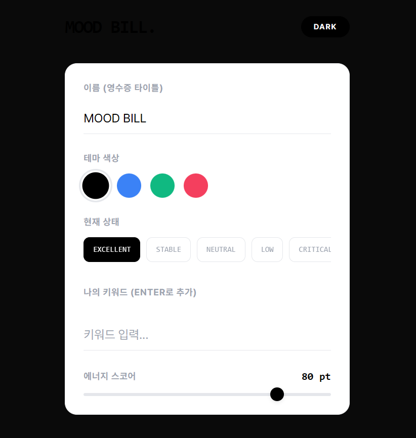 [배포] 오늘 하루, 당신의 감정은 얼마였나요? 데일리 감정 영수증 Mood Bill 본문